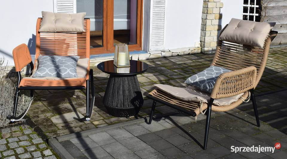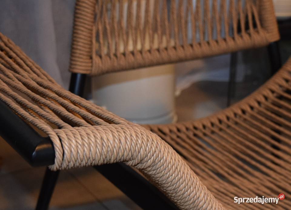 meble ogrodowe wypoczynkowy fotel bujany leżak ogrodowy technorattan nowoczesny wyplatany sznurkiem na biegunach nowość