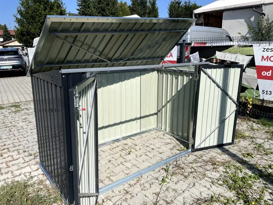 garaż na rower schowek na kosze na śmieci Wymiary: 206x100x130cm wysokości