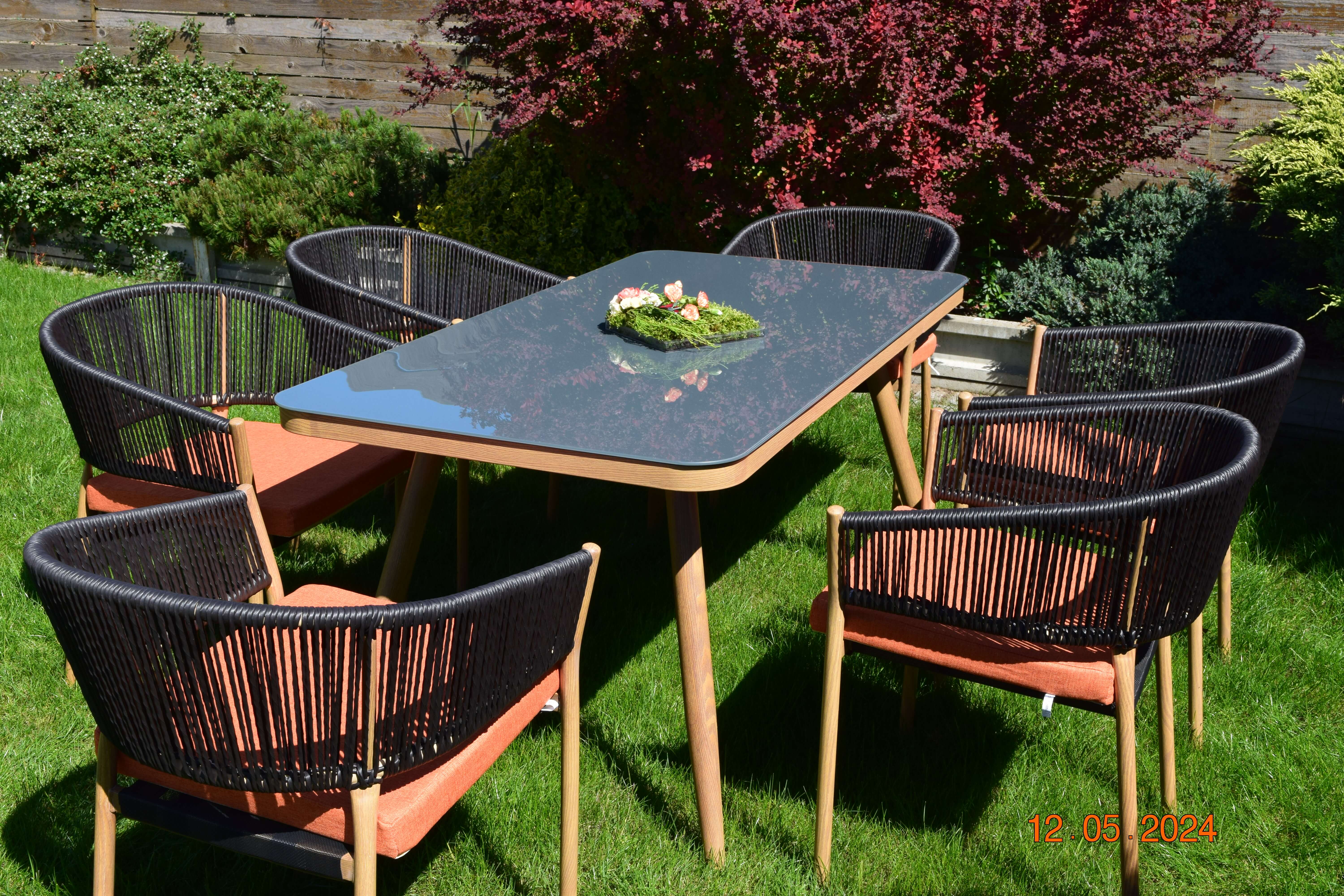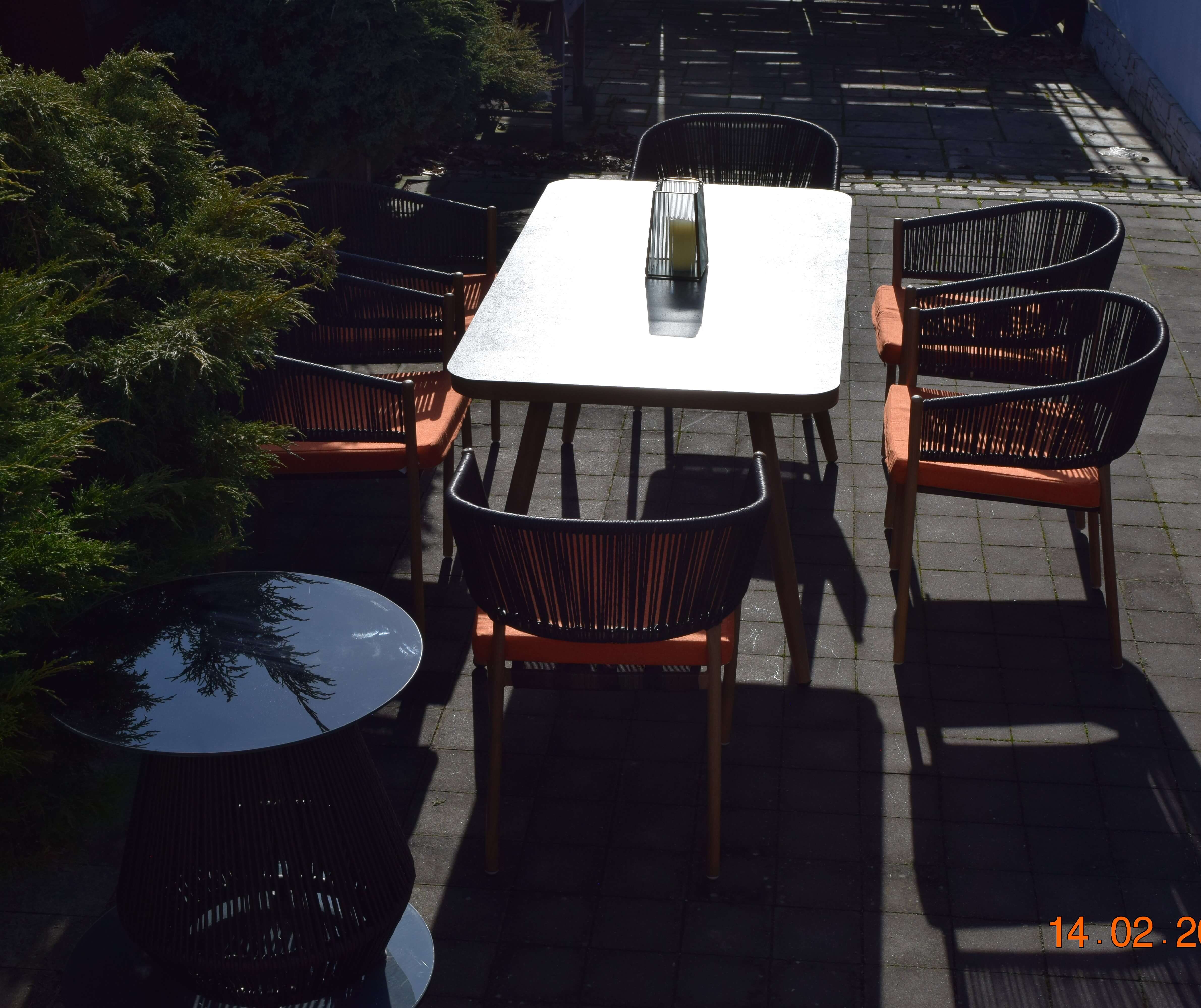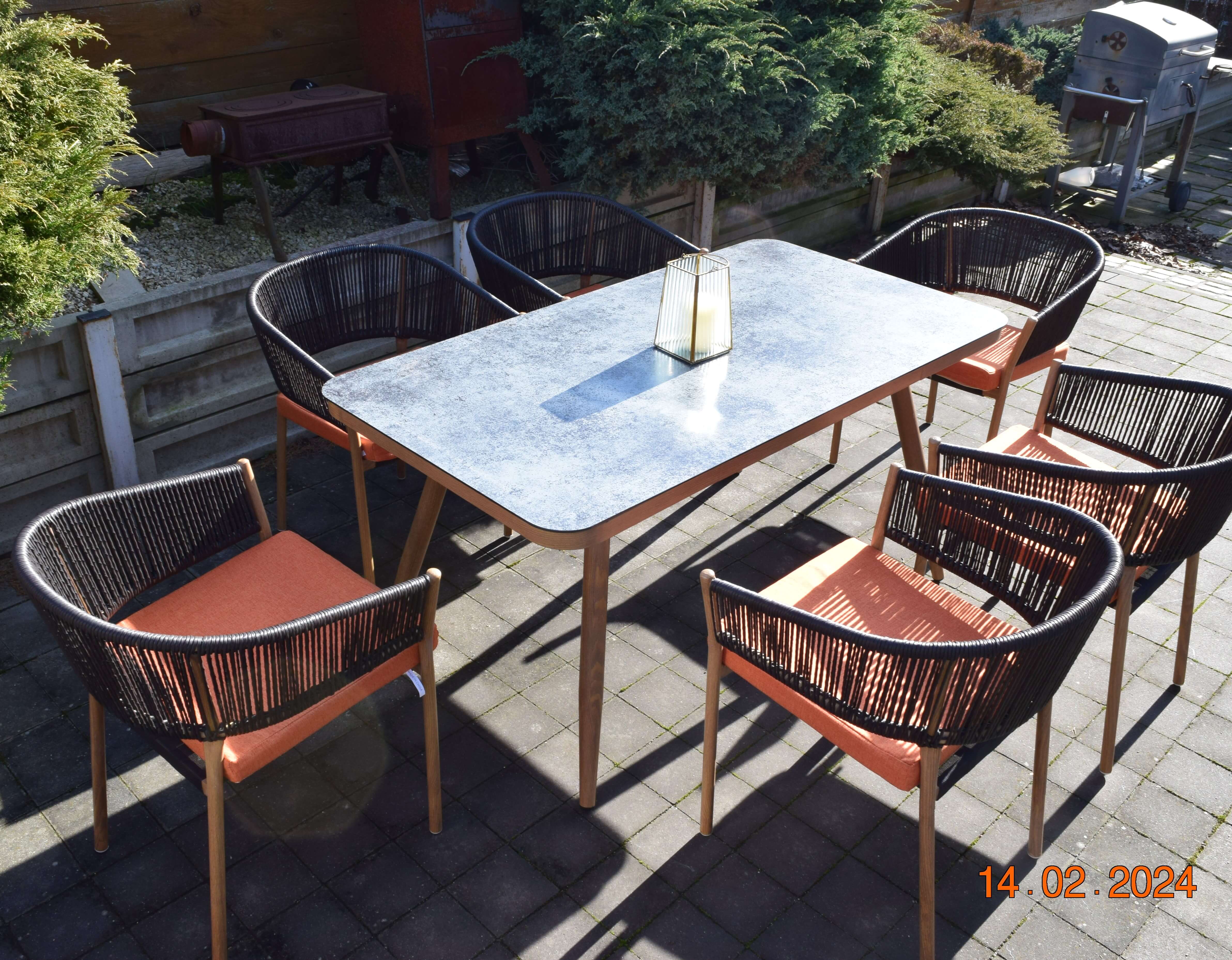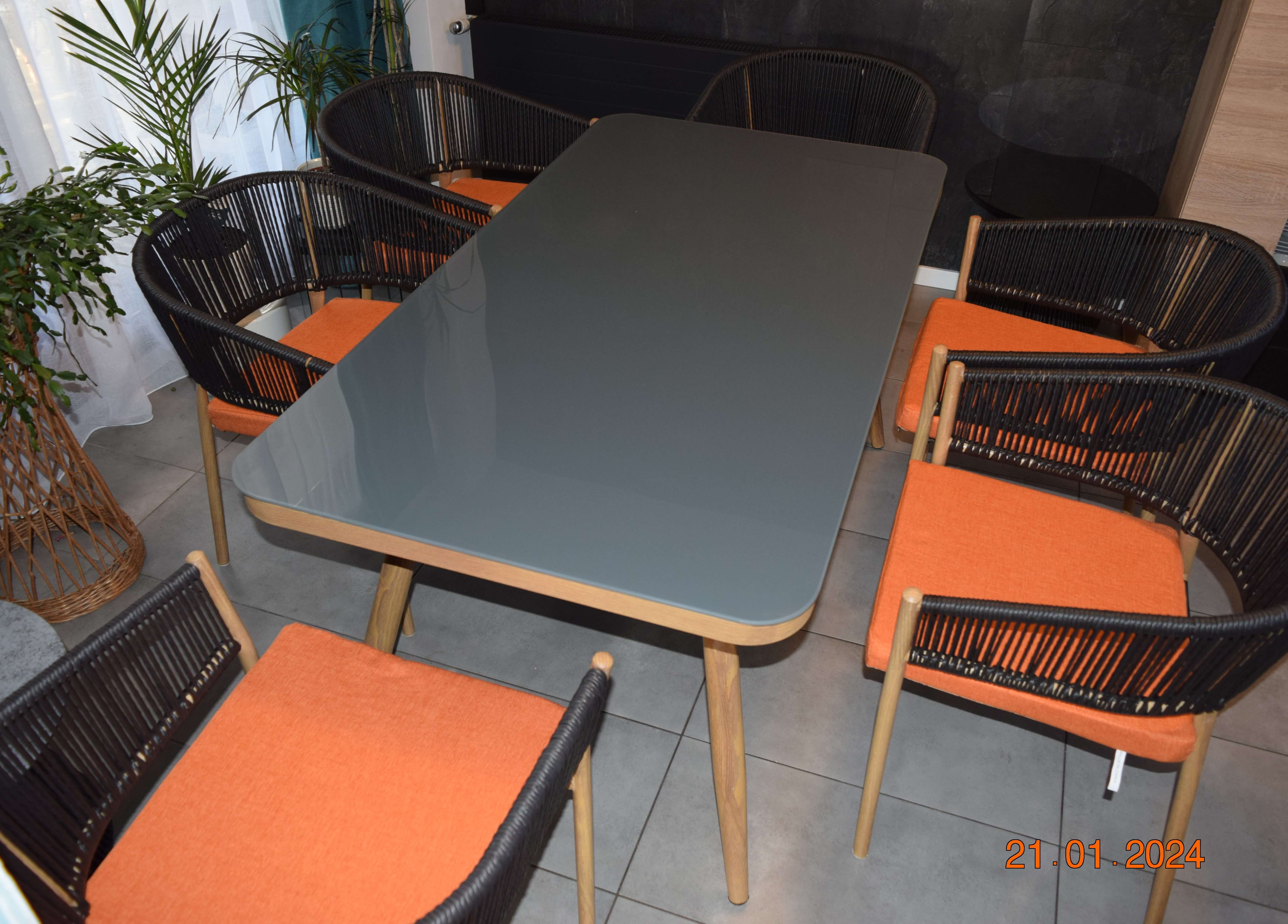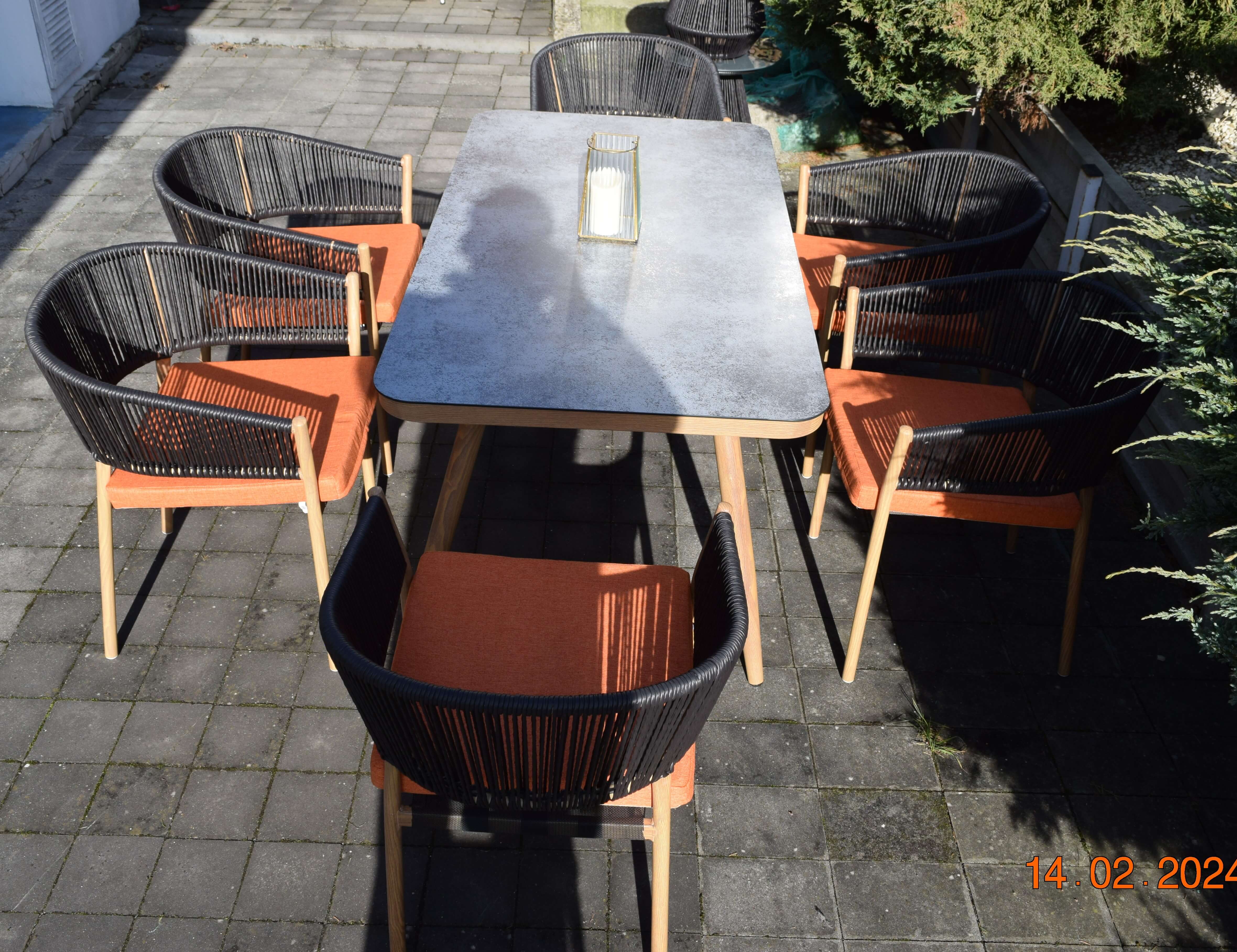 Poznaj nasz elegancki zestaw mebli ogrodowych – idealne rozwiązanie, by nadać Twojemu tarasowi lub ogrodowi unikalnego charakteru. Ten wyjątkowy jadalniany zestaw ogrodowy został zaprojektowany z myślą o komforcie 6 osób, co sprawia, że każde spotkanie staje się niezapomnianym wydarzeniem.