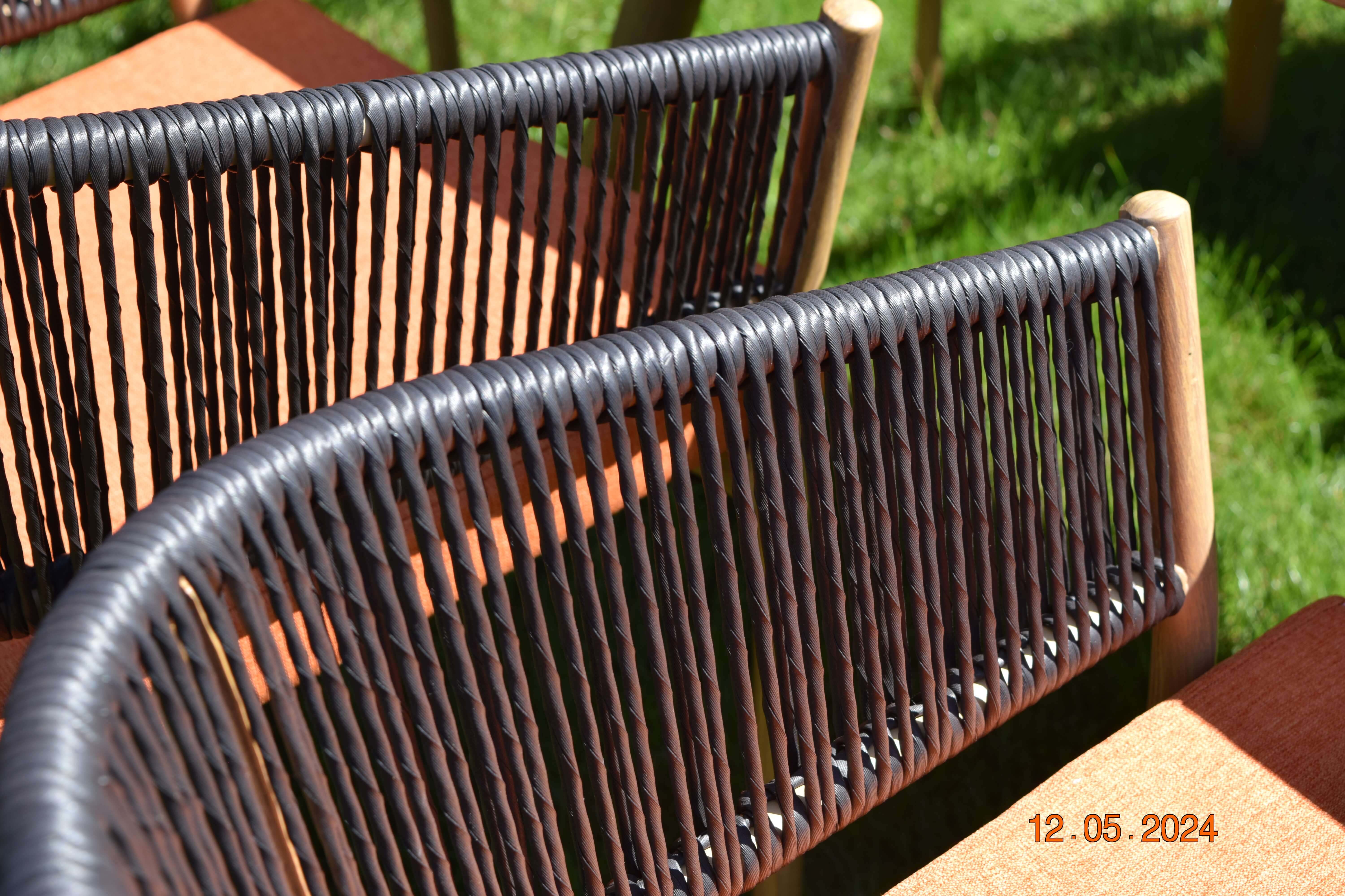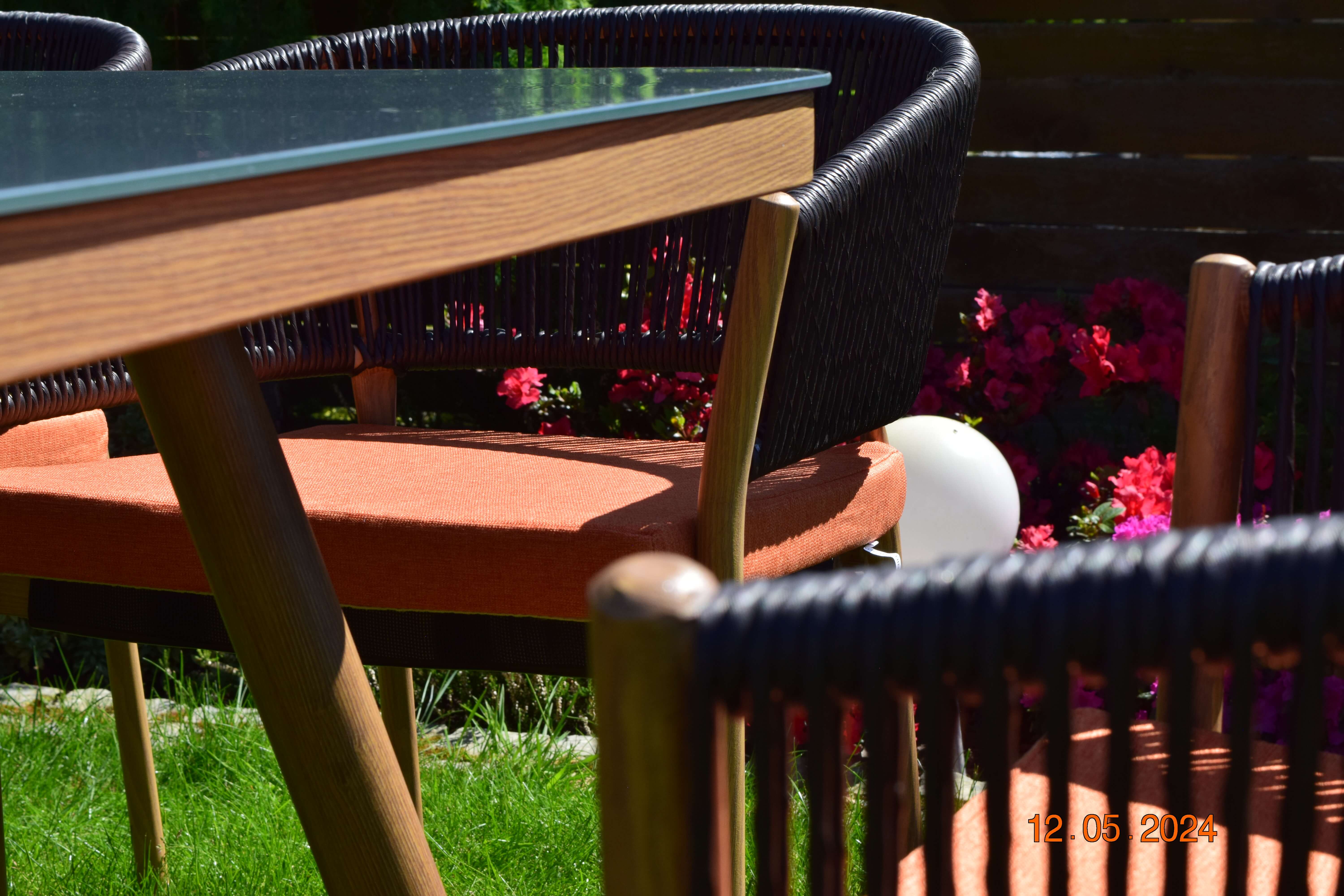Nasz zestaw mebli na taras łączy w sobie lekką stal malowaną proszkowo, imitującą strukturę drewna oraz dodatkowe elementy, takie jak czarny woskowany sznurek. Dzięki starannemu wykonaniu każdy detal gwarantuje nie tylko wyjątkowy wygląd, ale także długotrwałą eksploatację – idealne eleganckie meble do ogrodu, które sprostają wymaganiom zarówno codziennego użytku, jak i specjalnych okazji.