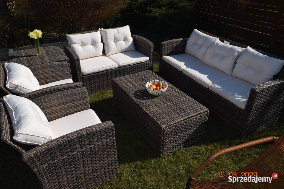 Poznaj propozycję dla posiadaczy przydomowych tarasów, patio oraz ekskluzywnych namiotów ogrodowych. Ten elegancki zestaw mebli na taras wyróżnia się ponadczasowym designem, który łączy w sobie nowoczesność z nutą klasyki. Wykonany z wysokiej jakości technorattanu, który swoim wyglądem i dotykiem przypomina naturalny rattan, idealnie wpisuje się w aranżacje ogrodowe. Cena zestawu to 4899 zł – inwestycja w komfort i styl.