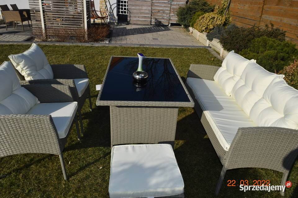 Zestaw został zaprojektowany z myślą o komforcie. W skład kompletu wchodzą dwa fotele z komfortowymi poduszkami, sofa mieszcząca nawet trzy osoby oraz wygodny stół o specjalnie ukształtowanej wysokości, który ułatwia spożywanie posiłków. Dodatkowo pufy mają podwójną funkcję – służą zarówno jako dodatkowe siedziska, jak i praktyczne podnóżki. Idealny wybór dla miłośników mebli ogrodowych, którzy cenią sobie styl i wygodę.
