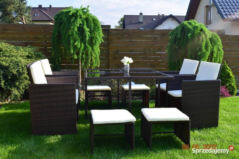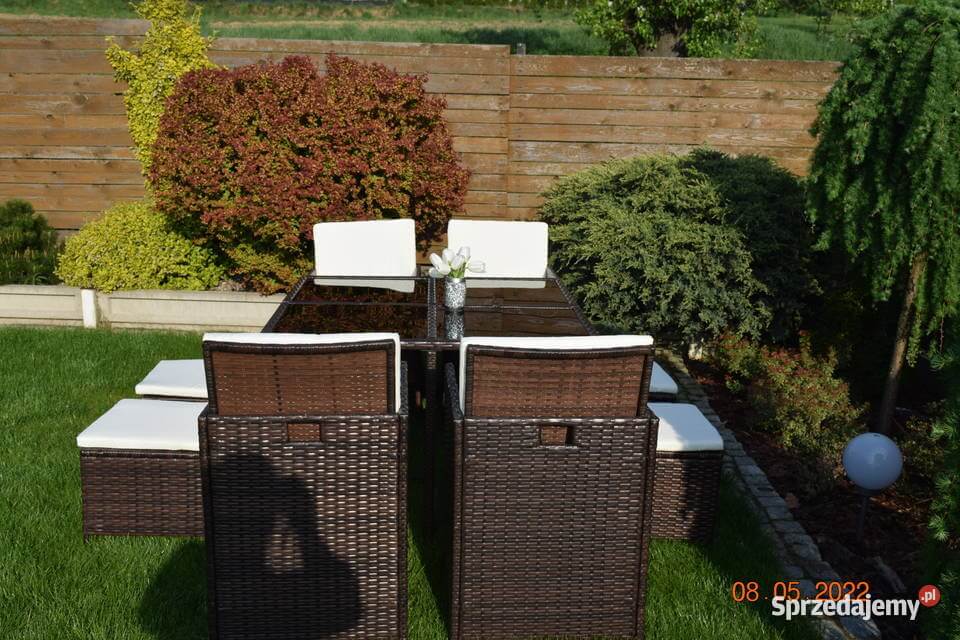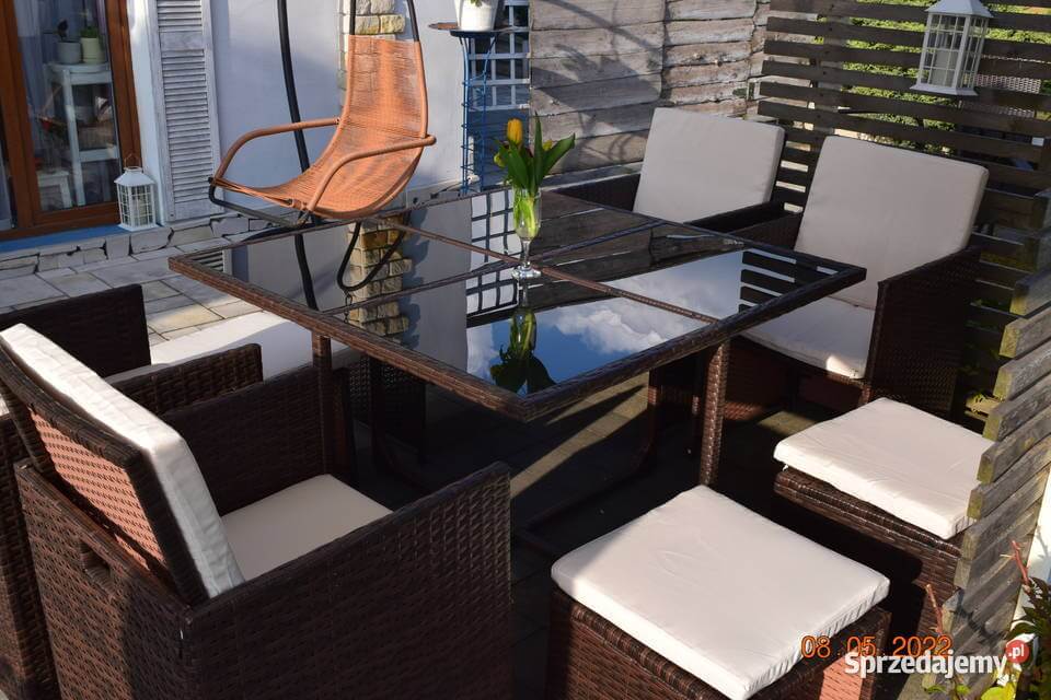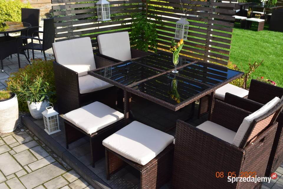 Poznaj nasz 8-osobowy zestaw mebli ogrodowych Tulipan, który łączy w sobie nowoczesny design z wyjątkową funkcjonalnością. Idealny zarówno jako jadalniany zestaw ogrodowy, jak i elegancki komplet mebli na taras, wzbogaci Twoją przestrzeń o oryginalny akcent. Naturalnie wpisane w trendy formy mebli, w zestawie znajdziesz 4 fotele i 4 pufki, wyplatane ręcznie z technorattanu, w stylowym brązowym kolorze, z dodatkiem ekri poduszek.