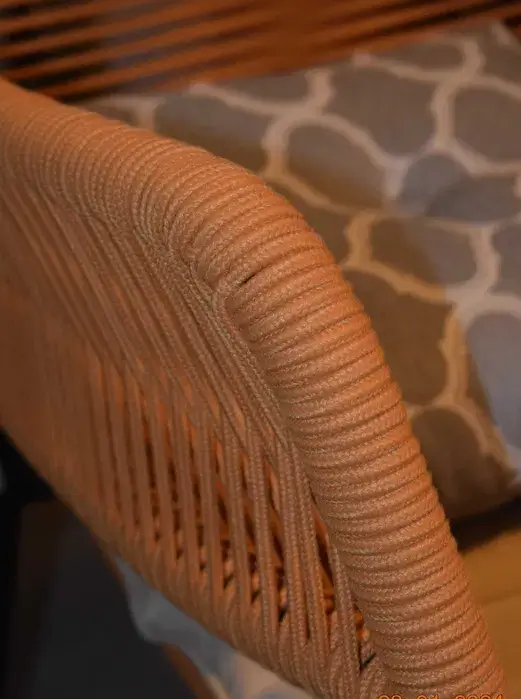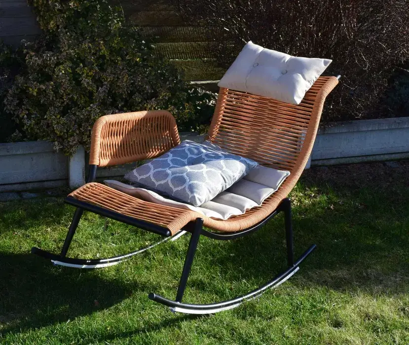 Wykonany z najwyższej jakości polirattanu, przypominającego super jakościowy sznurek, fotel bujany gwarantuje długotrwałe użytkowanie. Odporny na promieniowanie UV oraz zmienne warunki atmosferyczne, stanowi doskonały wybór nie tylko do użytku wewnętrznego, ale również na tarasie. Stabilną konstrukcję zapewnia stalowa rama, pokryta proszkowo czarną farbą, która wyróżnia się odpornością na korozję.