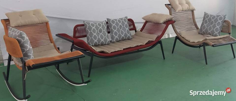 zestaw mebli ogrodowych wypoczynkowych sofa fotel bujany fotel technorattan nowoczesny styl wyplatane 1800 zł