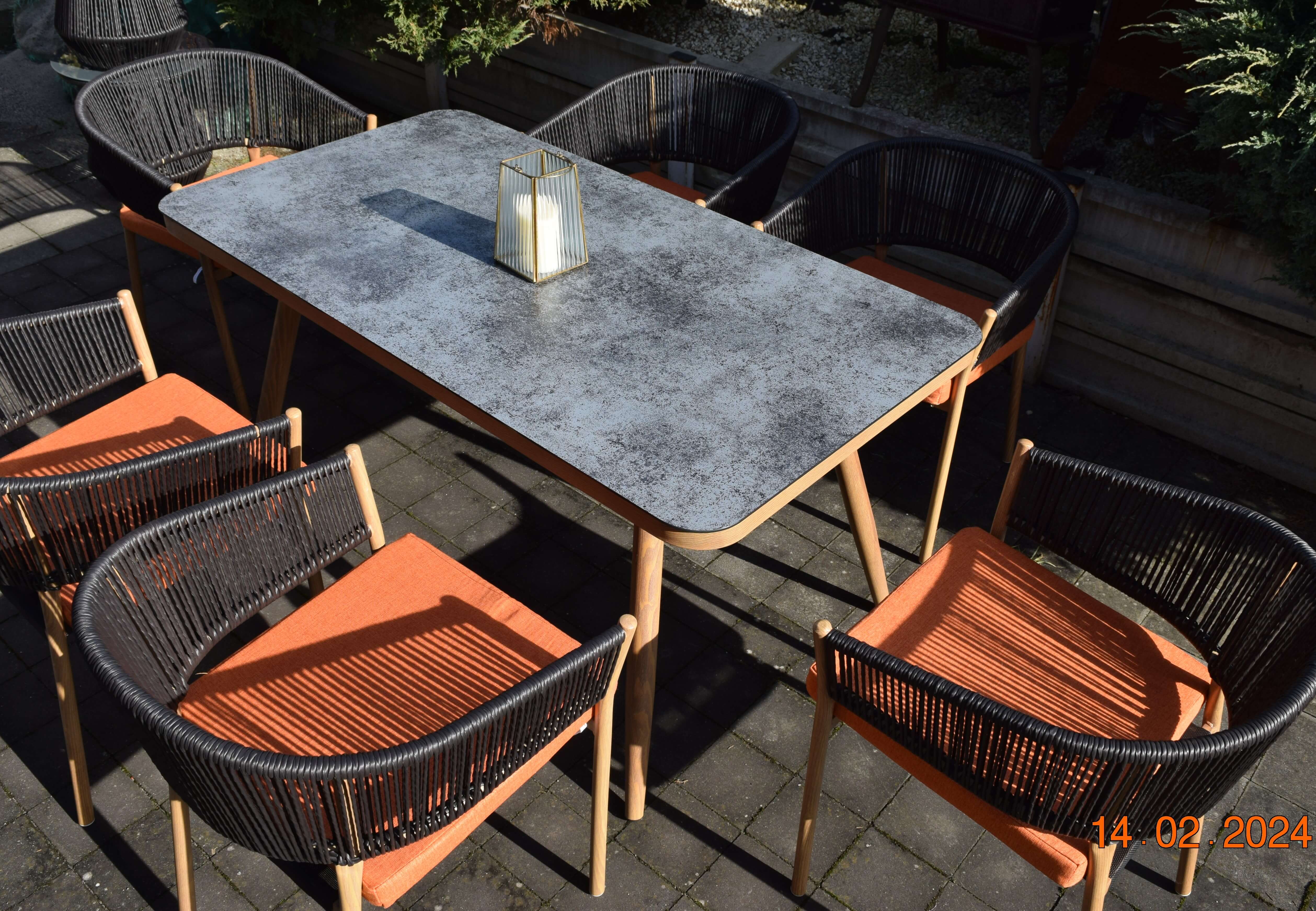 Nasz jadalniany zestaw ogrodowy został zaprojektowany z myślą o 6 osobach. Szerokie siedziska i wysokie podłokietniki zapewniają komfort podczas spotkań przy rodzinnym stole o wymiarach 150 cm x 80 cm x 73 cm. Przemyślana konstrukcja mebli ogrodowych umożliwia łatwe układanie krzeseł jedno na drugim, co czyni zestaw nie tylko atrakcyjnym, ale i praktycznym rozwiązaniem dla Twojego tarasu.