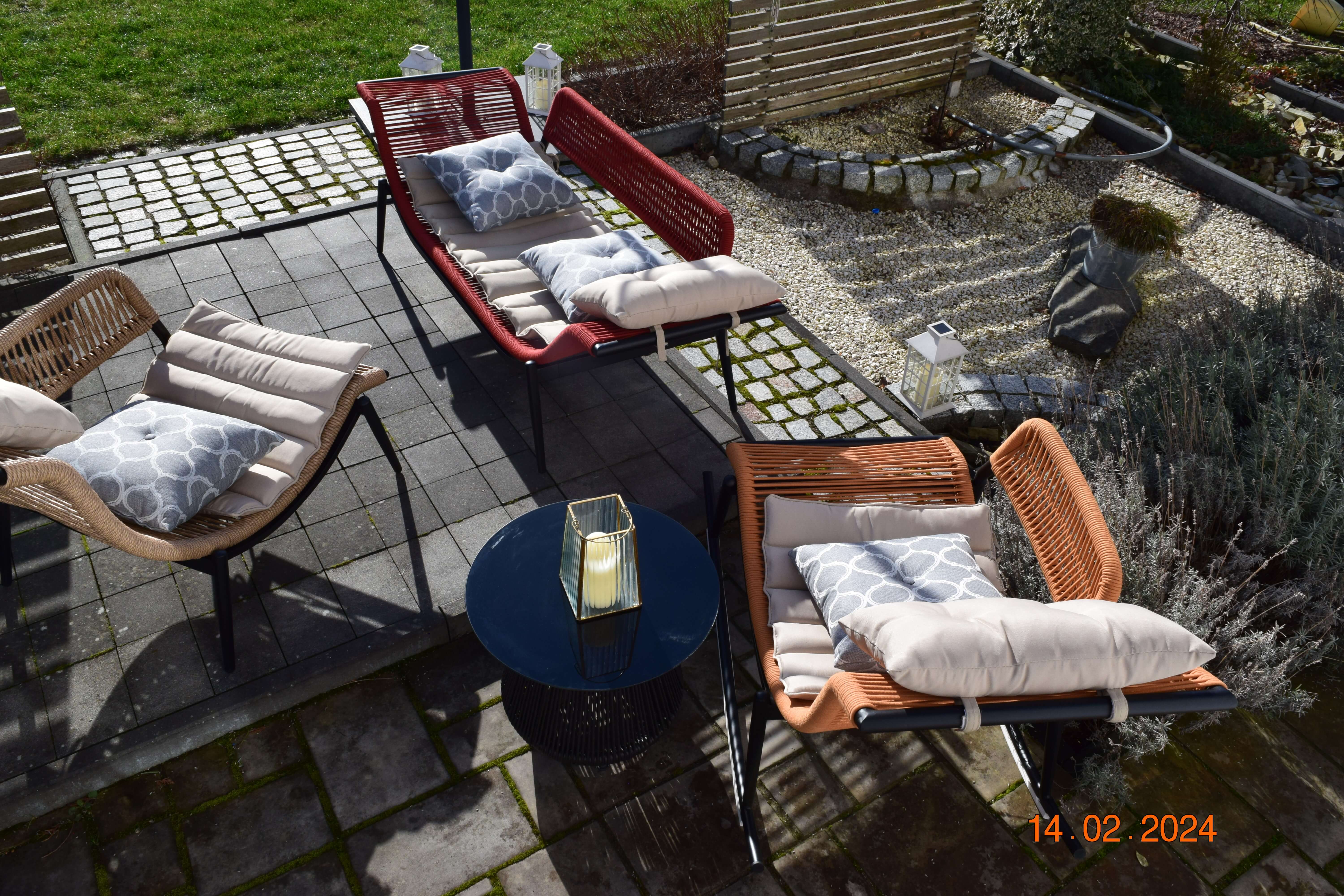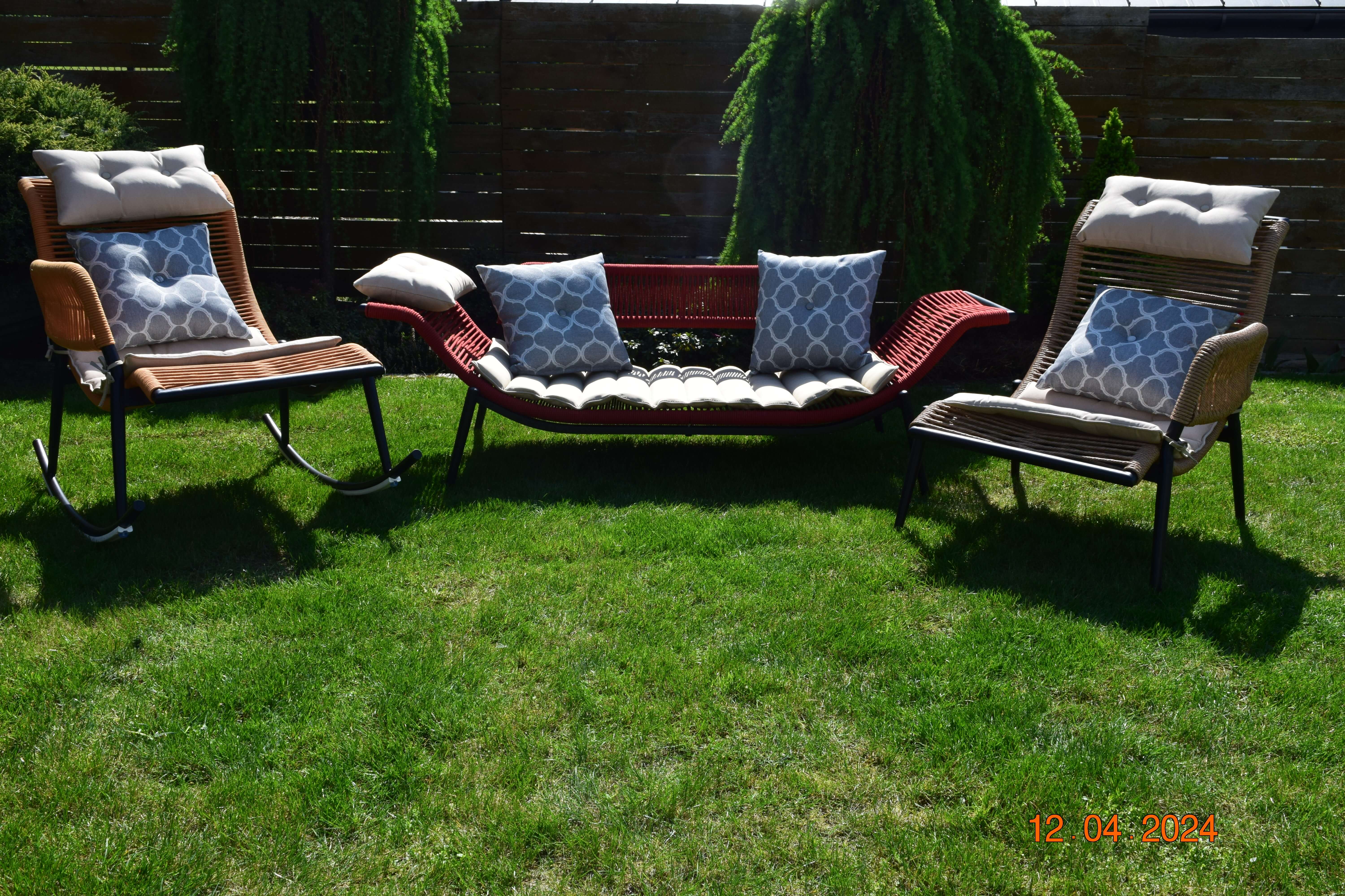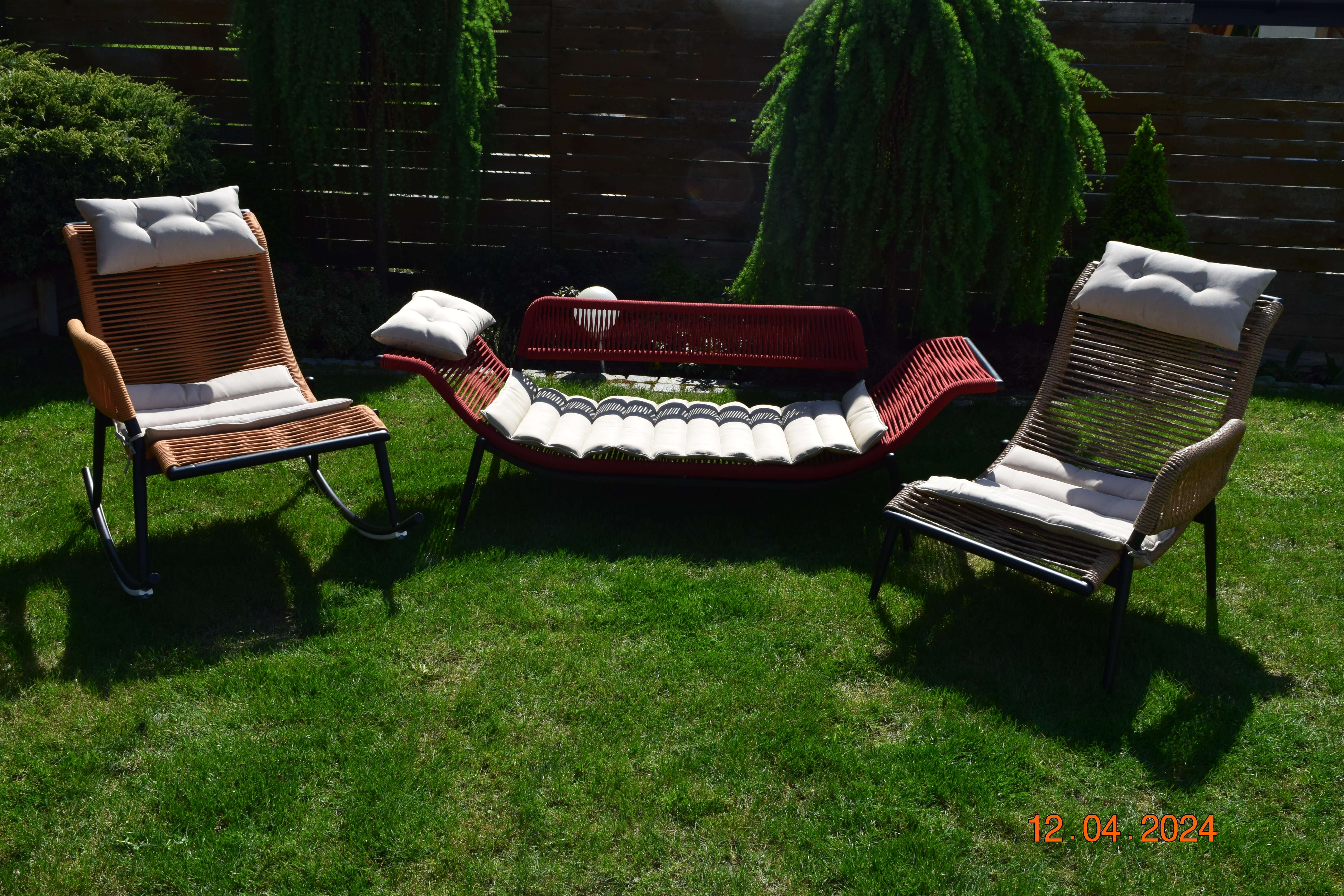 Zestaw został wykonany z trwałego polirattanu przypominającego super jakościowy sznurek. Ręcznie pleciona sofa ogrodowa i regulowane fotele – zarówno klasyczny fotel, jak i fotel bujany z płozami – gwarantują wygodę i niepowtarzalny design. Dzięki staliowej, odpornej na korozję ramie, meble ogrodowe są stabilne i gotowe, by służyć przez wiele sezonów.