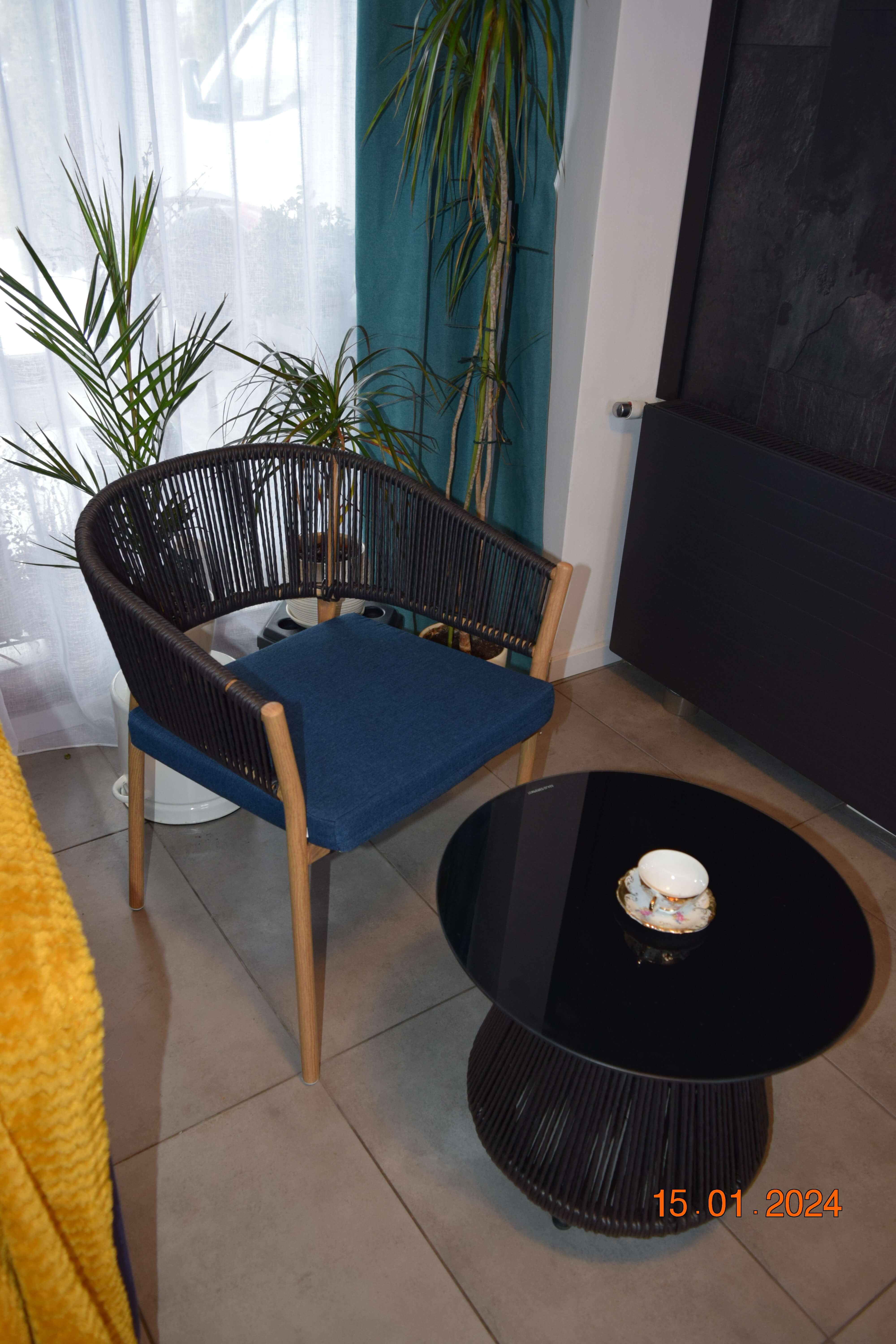 Nowoczesne krzesło ogrodowe z technorattanu, idealne do salonu, na taras lub do ogrodu. Krzesło może mieć pomarańczową poduszkę i szafirową,ma plecioną konstrukcję, która nadaje mu stylowy i elegancki wygląd. Świetnie sprawdzi się w nowoczesnych wnętrzach jako element dekoracyjny lub mebel wypoczynkowy..osobno sprzedajemy poduszki