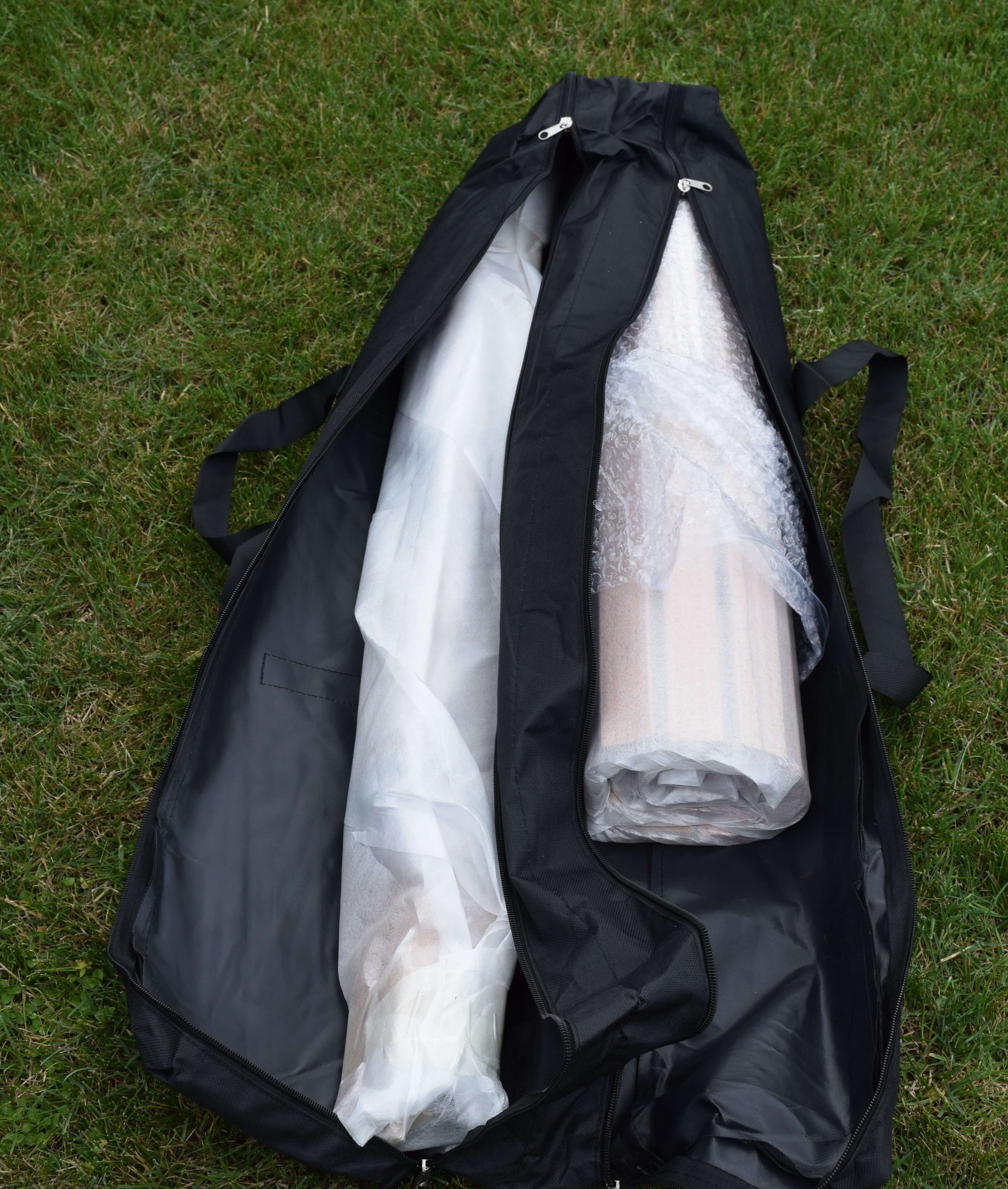Zabezpieczony lakierem schowany do torby podróżnej o 92cmx25cmx15cm bardzo lekki pakunek